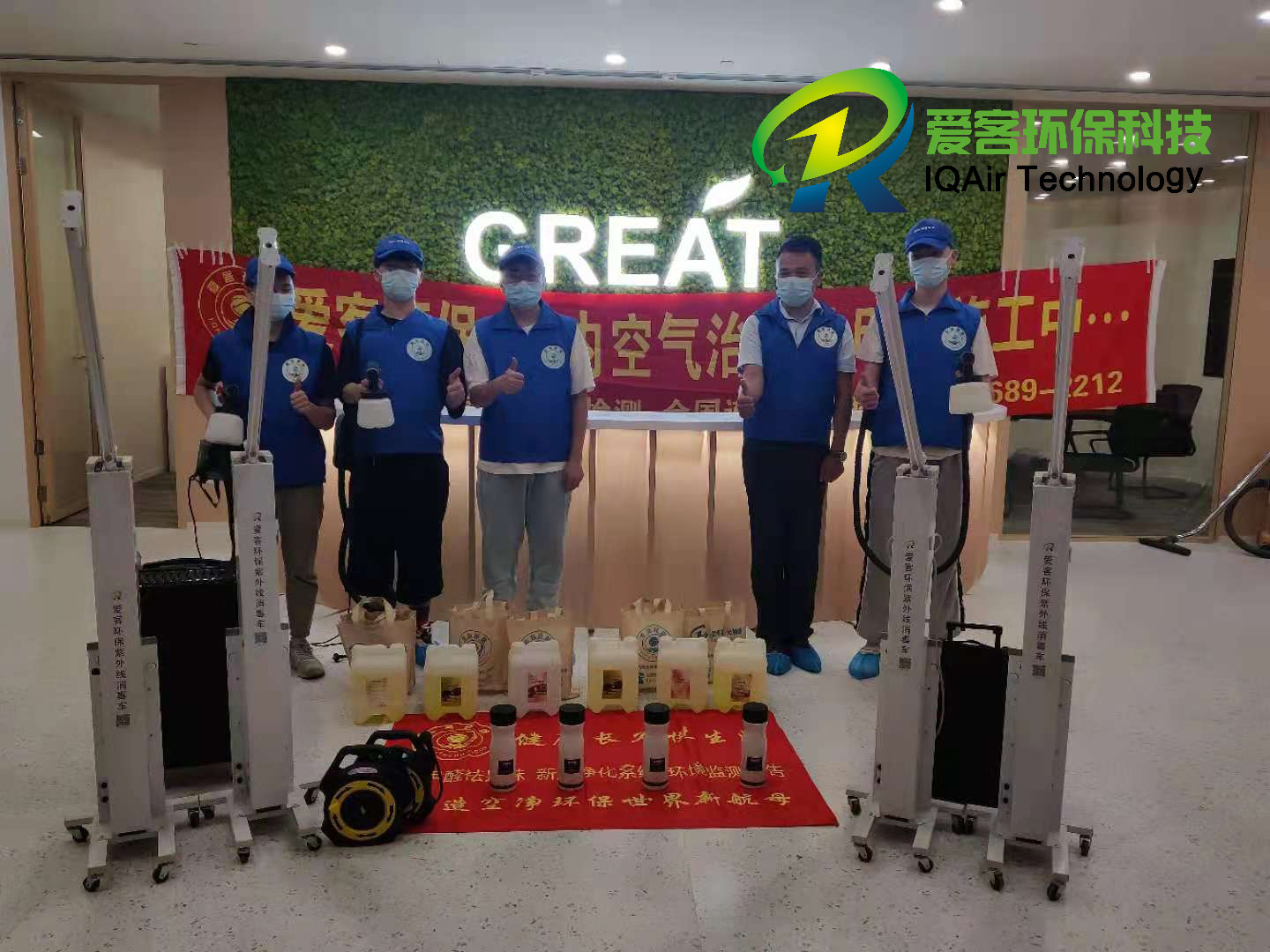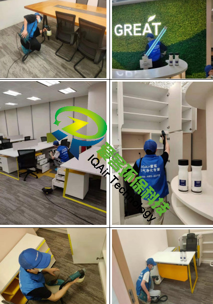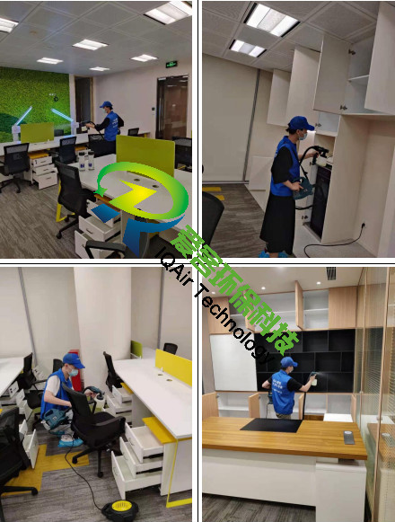愛客工程師們針對辦公區(qū)地毯、柜體、家具物表逐一噴灑愛客濃縮型異味分解酶(食品級)與強(qiáng)力TVOC清除劑(食品級),以消除化學(xué)異味分子,降解甲醛及TVOC。并結(jié)合紫外線燈進(jìn)行殺菌消毒治理。