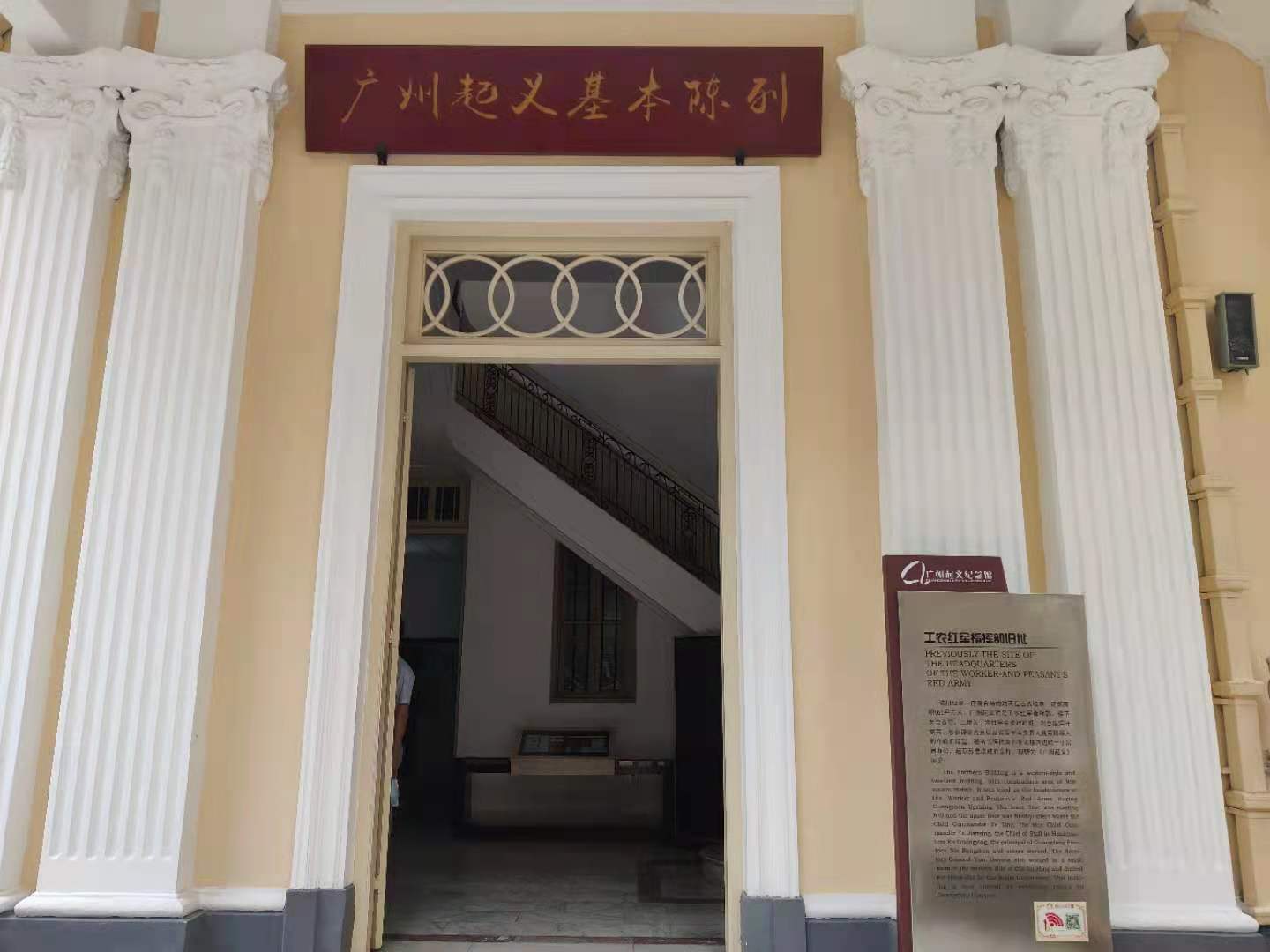 廣州起義紀念館為紀念中國第一個蘇維埃政府——廣州公社而設(shè)立。館舍為廣州公社舊址,面積約5000平方米。1987年成立紀念館,由葉劍英題寫?zhàn)^名?,F(xiàn)存文物建筑有:蘇維埃政府辦公地方(中樓),起義指揮部(北樓),警衛(wèi)連宿舍、彈藥庫(南樓),以及監(jiān)獄、拘留所等。中樓被辟為廣州起義史料輔助陳列,并復(fù)原張?zhí)邹k公室等。
