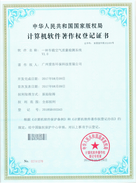 車載空氣質(zhì)量檢測(cè)系統(tǒng)軟著證書